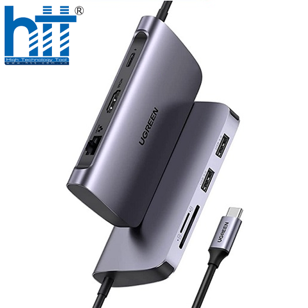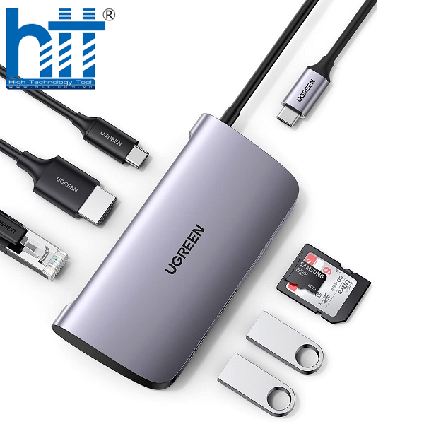 Bộ chuyển USB C 7 trong 1 Ugreen 50852, HDMI 4K + USB 3.0 + LAN 1Gbps + TF/SD + PD 100W