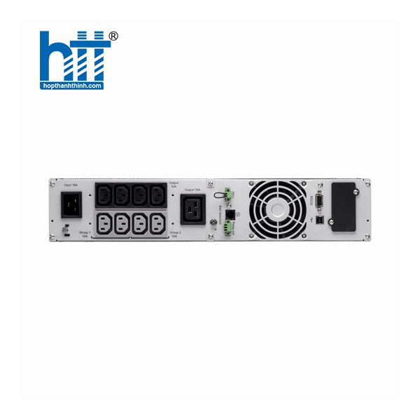 Cổng giao tiếp: Cổng giao tiếp RS232, USB, EPO, Relay output, khe cắm card mở rộng (SNMP card, Relay). màn hình LCD hiển thị trạng thái làm việc, thông tin về tải.