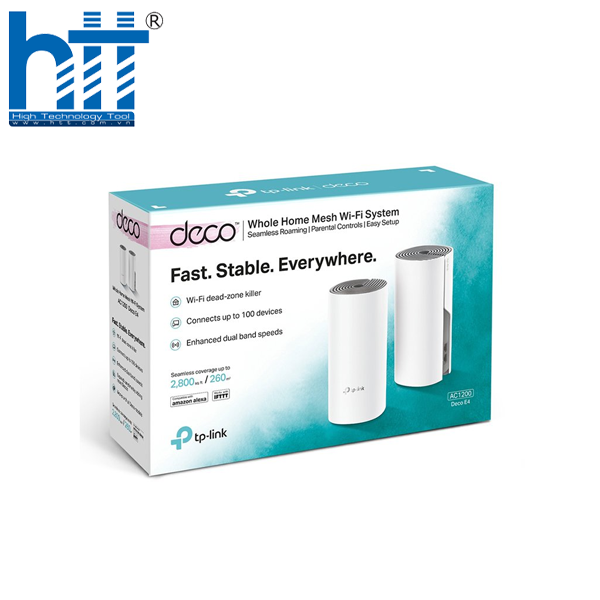 Bộ phát wifi chính hãng TP-Link Mesh Deco E4 2-Pack AC1200 là cách đơn giản nhất để đảm bảo tín hiệu Wi-Fi mạnh ở mọi góc trong nhà của bạn lên tới hơn 260 mét vuông (2 thiết bị). Các kết nối Wi-Fi và đường truyền Ethernet tùy chọn hoạt động cùng nhau để liên kết các thiết bị Deco, cung cấp tốc độ mạng nhanh hơn và vùng phủ sóng thực sự liền mạch. Muốn mở rộng vùng phủ sóng? Đơn giản chỉ cần thêm một Deco khác.