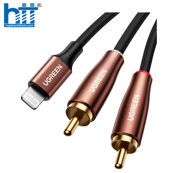 Cáp audio âm thanh Lightning sang RCA Ugreen 40897 được trang bị bện bằng đồng và tấm chắn bằng nhôm Mylar, cáp RCA kép này có thể truyền nhạc giữa các thiết bị có cổng Lightning và các thiết bị 2RCA (Đỏ và Trắng), chẳng hạn như iPhone, iPod, iPad, Bộ khuếch đại, Loa, TV, Đầu thu Radio, DVD, AV trên ô tô.
