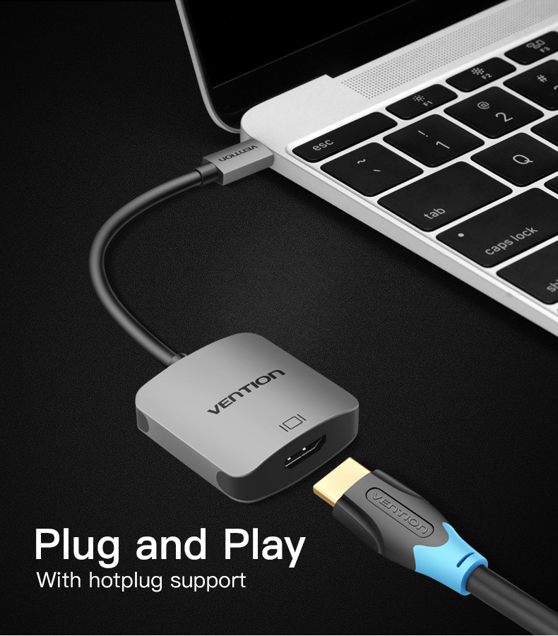 - Cáp chuyển đổi Type-C ra HDMI Vention được thiết kế giúp bạn chuyển kết nối giữa các thiết bị có cổng Type-C ra cổng HDMI tốc độ truyền tải dữ liệu nhanh chóng giúp bạn kết nối dễ dàng với các thiết bị trong học tập, làm việc cũng như vui chơi giải trí.