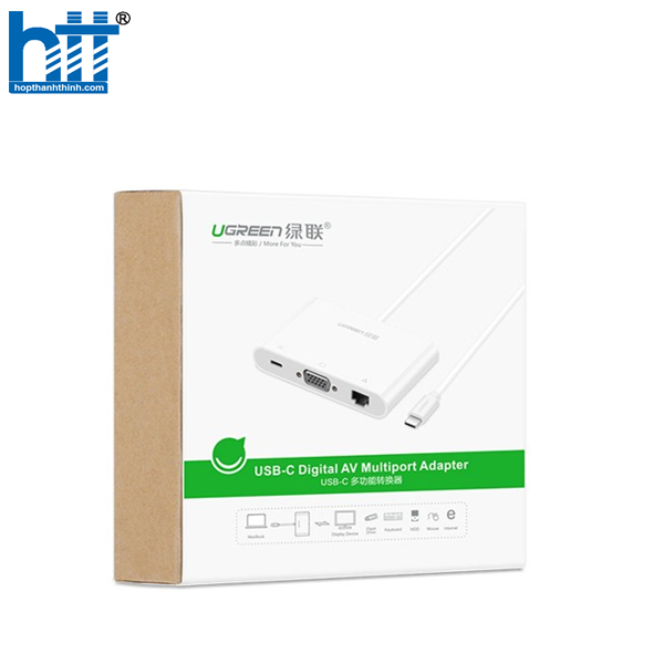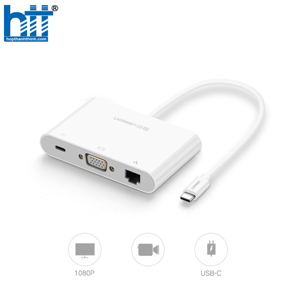 - Cáp chuyển USB Type to VGA, LAN, USB 3.0, USB 2.0 Ugreen 30439 được thiết kế để kết nối MacBook với cổng USB-C để một hiện HDTV, màn hình hoặc máy chiếu với VGA với độ phân giải lên đến 1920x1080P.