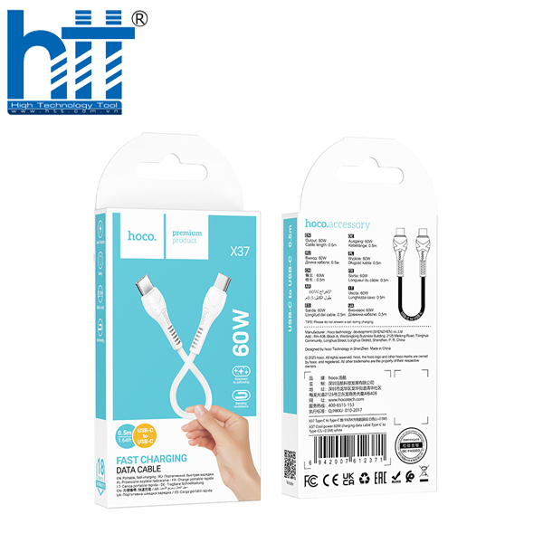 Cáp dữ liệu sạc X37 60 Type-C to Type-C là một giải pháp hiệu quả cho việc truyền dữ liệu và sạc nhanh chóng giữa các thiết bị có cổng Type-C. Với độ dài 0,5 mét, nó là sự lựa chọn lý tưởng cho việc sử dụng trong không gian hẹp hoặc khi cần di chuyển linh hoạt.