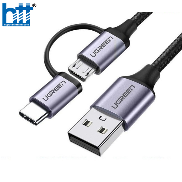 Cáp sạc, dữ liệu 2 in 1 USB A sang USB Micro + Type-C dài 1M Ugreen 30875