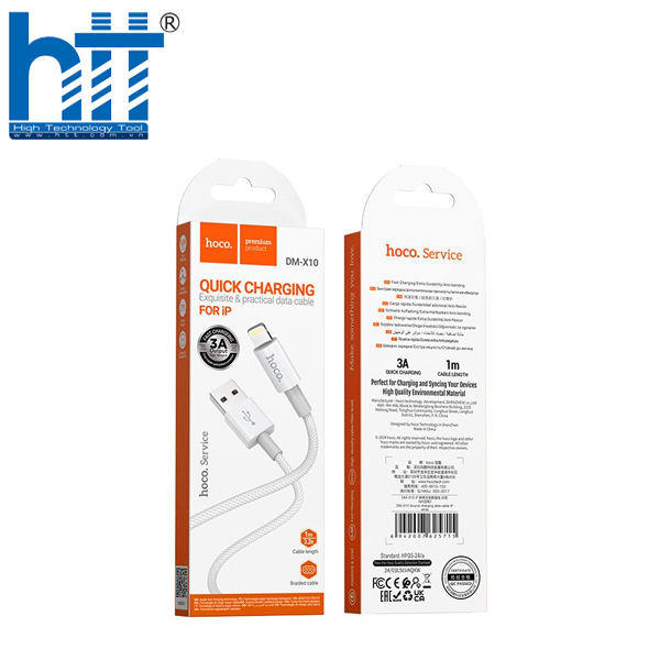 Cáp sạc nhanh 3A DM-X10 IP không chỉ là một phụ kiện thông thường mà là một giải pháp đáng tin cậy để sạc thiết bị của bạn. Với khả năng tương thích vượt trội, bạn có thể sạc nhanh các thiết bị của mình mà không cần lo lắng về tương thích.