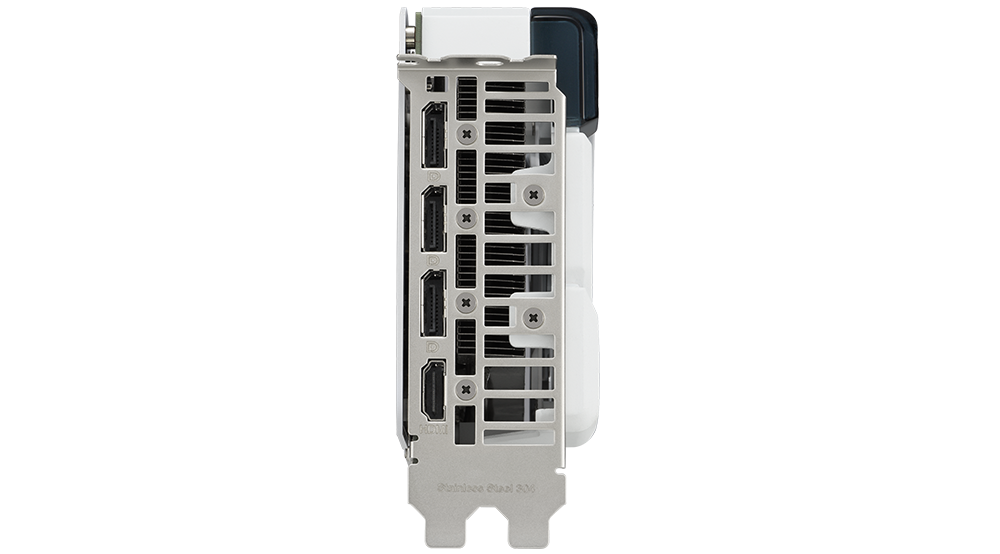 PCB được gia cố bằng một tấm ốp lưng bằng nhôm giúp tăng thêm độ cứng cho cấu trúc, giúp ngăn ngừa uốn cong và bảo vệ các thành phần cũng như đường dẫn khỏi bị hư hại. Mặt sau có một lỗ thông hơi rộng cho phép không khí nóng thoát về phía quạt hút của thùng máy thay vì được tái chế trở lại bộ làm mát GPU.