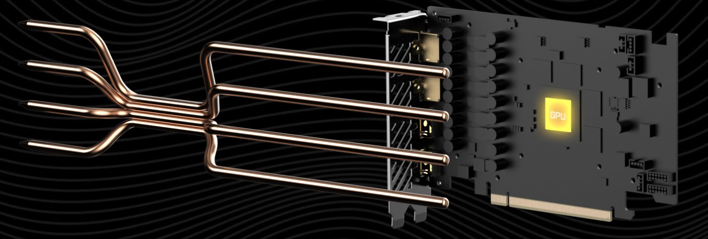 Ống dẫn nhiệt bằng đồng nguyên chất tối đa hóa diện tích tiếp xúc với GPU cho bề mặt tản nhiệt rộng hơn. Ống dẫn nhiệt cũng bao phủ VRAM thông qua một tấm kim loại tiếp xúc để đảm bảo luôn có chế độ làm mát phù hợp trong mọi tình huống.