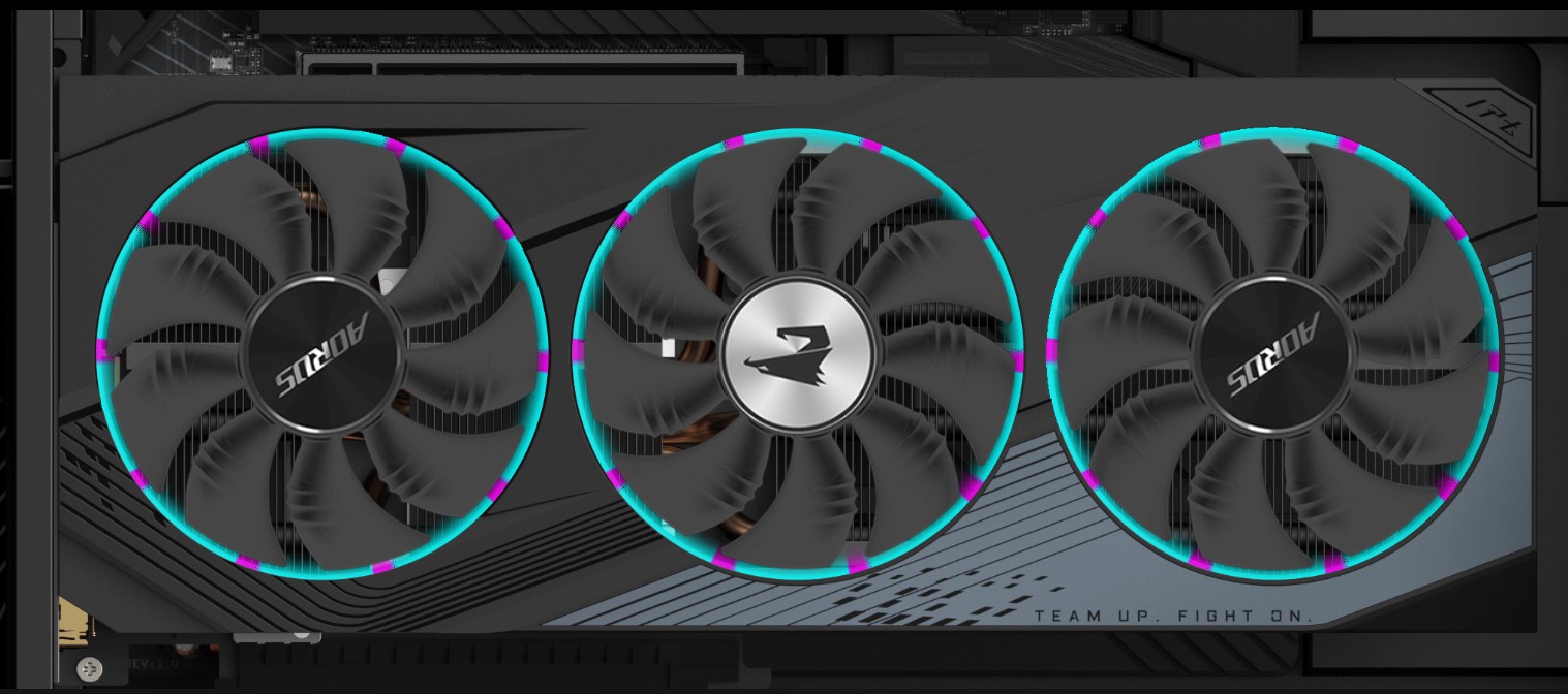 Hệ thống chiếu sáng ba vòng huyền thoại, bạn có thể chọn bất kỳ hiệu ứng ánh sáng nào hoặc đồng bộ hóa với các thiết bị khác trong Gigabyte Control Center giúp bộ máy thêm phần rực rỡ.
