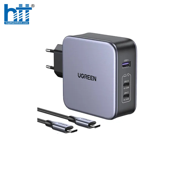 Ugreen 90747 65W Màu Trắng Bộ sạc nhanh gồm 2 cổng USB-C + USB-A chuẩn cắm EU cd327 20090747