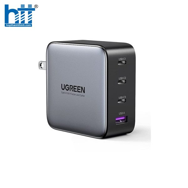 Bộ sạc 4 cổng Ugreen 40737 Nexode USB C có 3 cổng USB-C và một cổng USB-A cung cấp công suất lên đến 100W. Sạc cùng lúc Điện thoại, máy tính bảng, máy tính xách tay, v.v.
