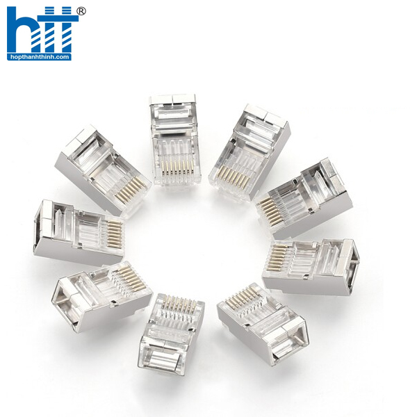 - Đầu bấm mạng cat 6e Ugreen 20333 làm từ nhựa trong dẻo. Đầu bọc nhôm chắc chắn, chân tiếp xúc từ đồng nguyên chất, đầu nối mạ vàng 24K chống rỉ.