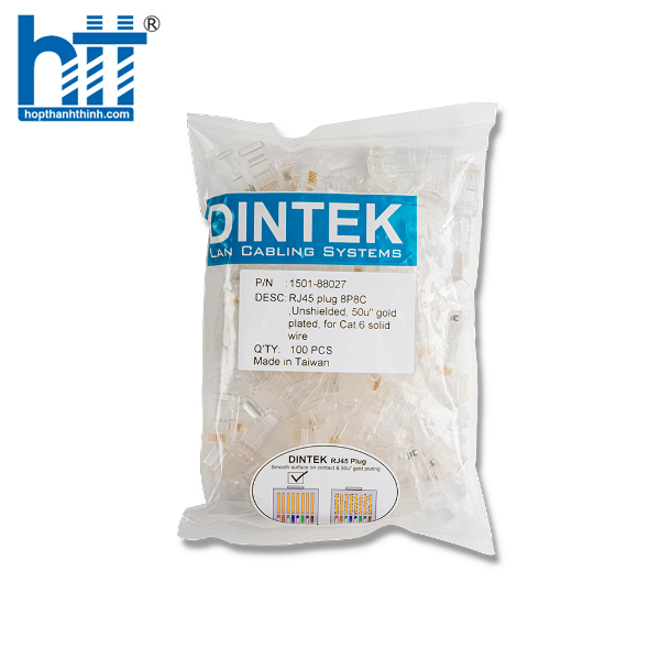 Đầu cáp 1501-88027 là loại đầu cáp chuyên dùng cho các loại cáp CAT.6 có độ xoắn và lượng đồng cao. Hàng được sản xuất tại hãng Dintek-Taiwan.