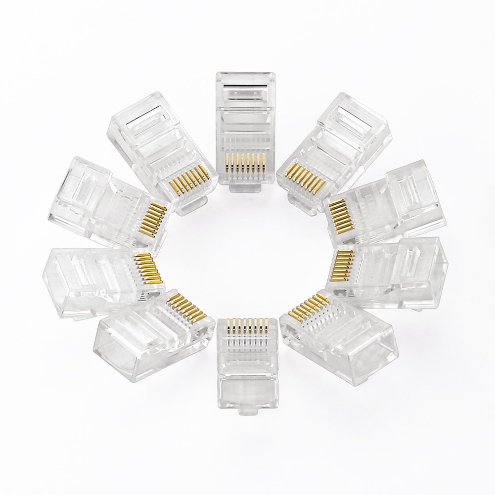 Đầu bấm mạng RJ45 cat5 cao cấp Ugreen được sản xuất bằng chất liệu cao cấp bao gồm các chân bấm bằng đồng nguyên chất mạ vàng 24K (lớp mạ dầy 50 micro met) và chất liệu nhựa cao cấp giúp đảm bảo khả năng dẫn truyền tín hiệu của các sợi cáp mạng cat5, cat5e.