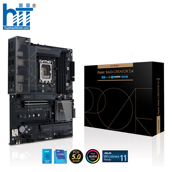 Mainboard Asus PROART B660-CREATOR D4 là bo mạch chủ nâng cao được thiết kế cho khối lượng công việc sáng tạo nội dung chuyên sâu như kết xuất 3D và chỉnh sửa video 4K / 8K. Nó giải phóng hiệu suất của bộ vi xử lý Intel ® Core ™ thế hệ thứ 12 thông qua thiết kế tản nhiệt và phân phối điện mạnh mẽ. Đồng thời kết nối toàn diện của nó bao gồm Ethernet 2,5 Gb và 1 Gb tích hợp, đầu nối mặt trước USB 3.2 Gen 2x2 Type-C ® với Quick Charge 4 + và DisplayPort ™ qua USB-C.