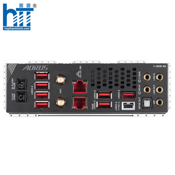 1 x Q-Flash Plus button 1 x Clear CMOS button 2 x SMA antenna connectors (2T2R) 1 x USB Type-C™ port, with USB 3.2 Gen 2 support 7 x USB 3.2 Gen 2 Type-A ports (red) 2 x RJ-45 ports 1 x optical S/PDIF Out connector 5 x audio jacks |