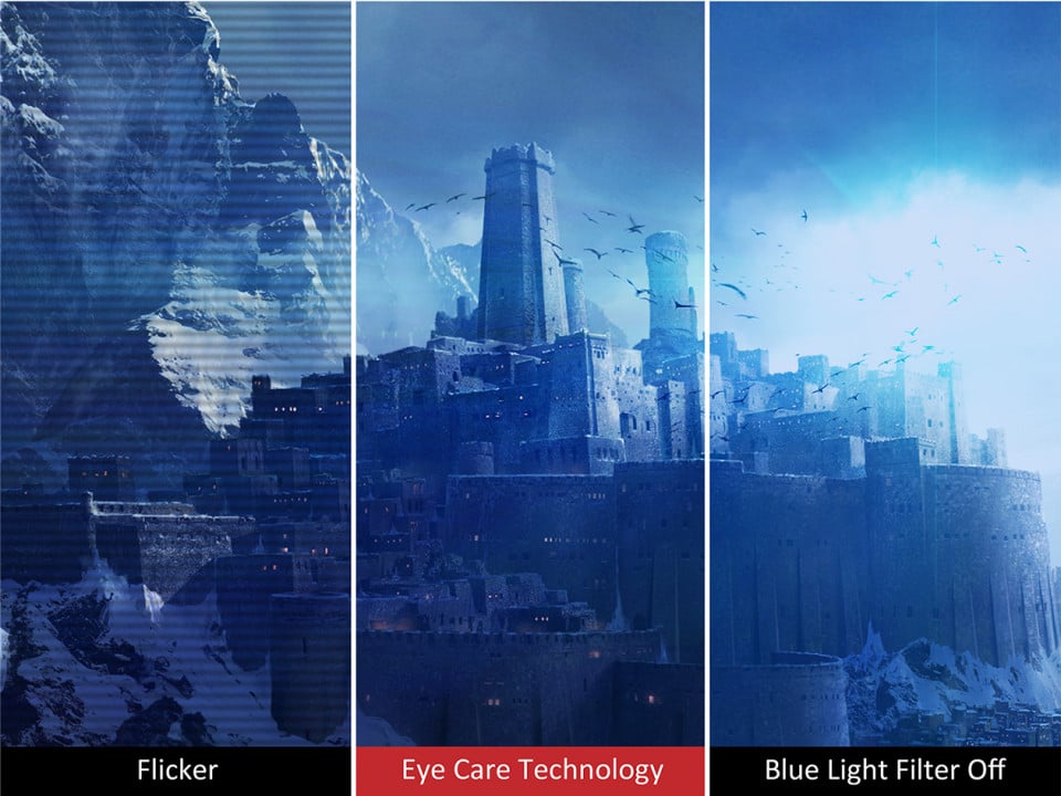 Công nghệ Chống nhấp nháy và Bộ lọc ánh sáng xanh giúp loại bỏ sự mỏi mắt do các tia sáng xanh có hại khi làm việc lâu trên màn hình máy tính.