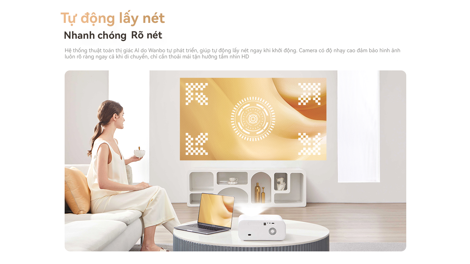 Điều đặc biệt ấn tượng về Wanbo X5 chính là khả năng tự động lấy nét, tự động chỉnh vuông góc và tự động cân chỉnh màn hình. Không cần phải lo lắng về việc cài đặt phức tạp, bạn chỉ cần nhấn nút và thưởng thức.