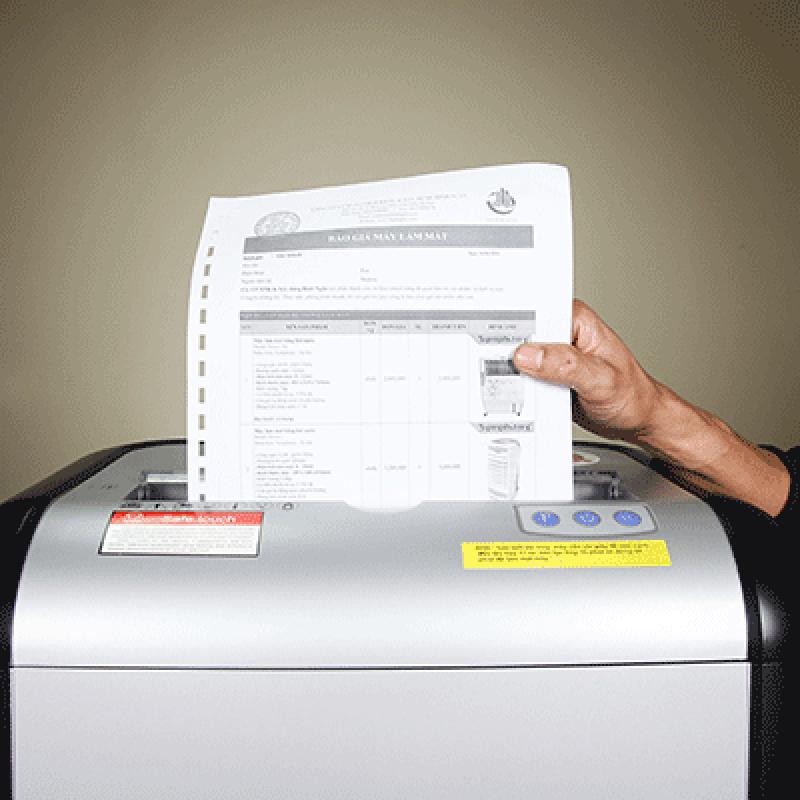 Với thùng chứa lớn lên tới dung tích 26L, bạn tha hồ hủy tài liệu mà không cần lo phải đi đổ rác liên tục hay việc hủy tài liệu bị gián đoạn.