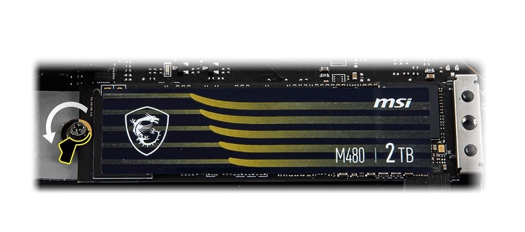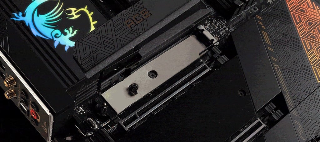 Khu vực lắp đặt ổ cứng SSD trên MSI MEG Z790 ACE cho phép bạn dễ dàng tháo rời mà không cần sử dụng ốc vít khi lắp đặt ổ cứng.