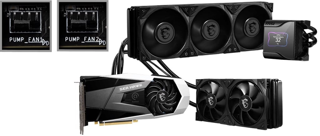 Trên MSI MEG Z790 ACE sẽ trang bị đầy đủ các ổ cắm dành cho mọi thiết bị tản nhiệt mà bạn mong muốn có, từ quạt tản nhiệt đến tản nhiệt AIO, hướng đến bộ PC Gaming mạnh mẽ nhất dành cho người dùng. Tất cả có thể dễ dàng điều chỉnh và kiểm soát thông qua phần mềm đi kèm hoặc BIOS từ mainboard MSI cung cấp.