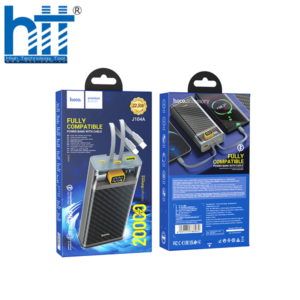 Dung lượng lớn 20000mAh: Với dung lượng này, pin sạc dự phòng J104A có thể sạc đầy nhiều thiết bị điện tử như điện thoại thông minh, máy tính bảng, và các thiết bị USB khác nhiều lần trước khi cần nạp lại.