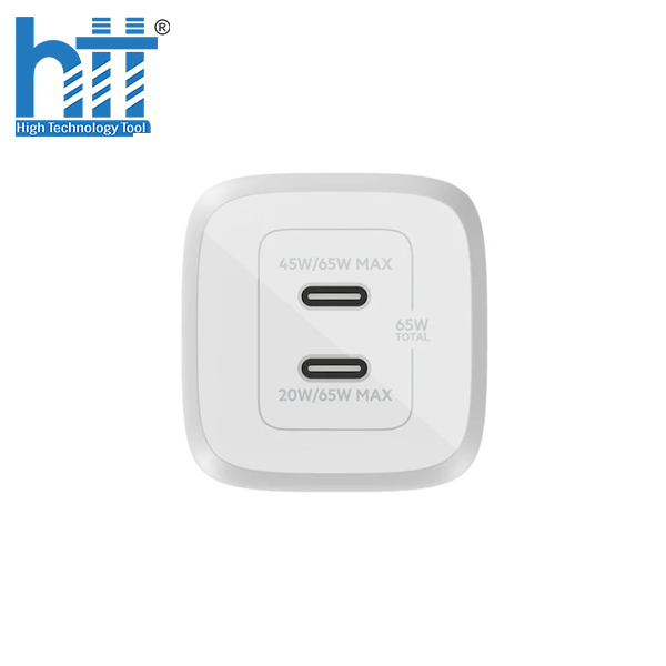 Củ sạc Belkin sạc nhanh 65W 2 cổng USB-C PD 3.0 PPS GaN (Màu trắng)