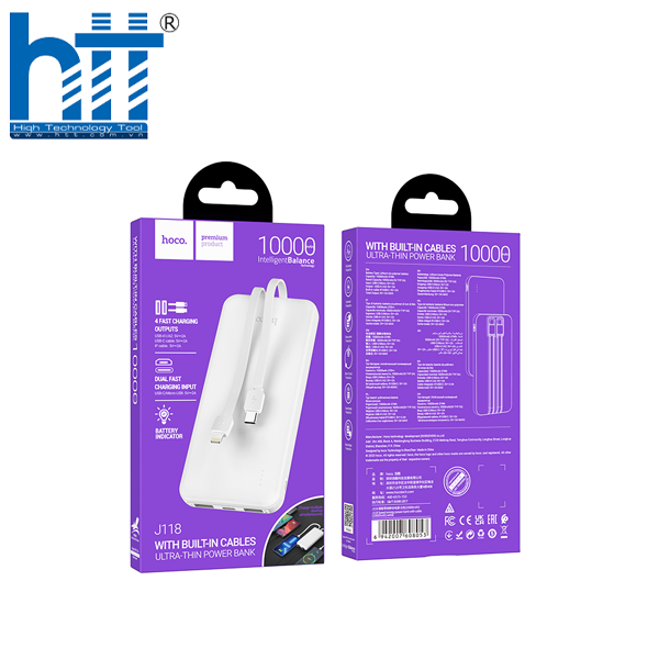 Hoco J118 hỗ trợ công nghệ sạc nhanh, cho phép bạn nhanh chóng sạc lại điện thoại, máy tính bảng và các thiết bị khác một cách hiệu quả. Đây là lựa chọn lý tưởng cho những người dùng có nhu cầu sử dụng liên tục và cần nguồn năng lượng dự phòng đáng tin cậy.