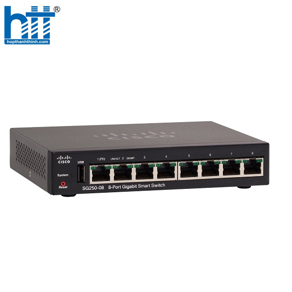 Cisco SG250-08-K9-EU với 8 cổng chia mạng tốc độ cao 10/100/1000Mbps thích hợp với các hệ thống mạng LAN trong mọi doanh nghiệp vừa và nhỏ.