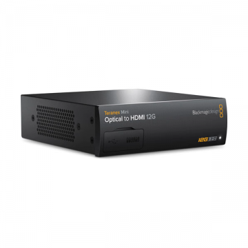 Bộ chuyển đổi Teranex Mini Optical to HDMI 12G từ Blackmagic Design cho phép bạn chuyển đổi tối đa tín hiệu 12G-SDI sang HDMI hoặc cài đặt mô-đun sợi quang tùy chọn và chuyển đổi tín hiệu sợi quang 12G sang HDMI. Bạn có thể đầu vào và xuất tín hiệu lên đến DCI 4K (4096 x 2160) 60p trên cả đầu vào và đầu ra, kết nối các nguồn như Blackmagic URSA ở đầu vào.