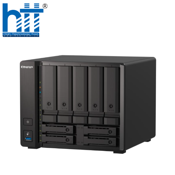 Thiết bị lưu trữ NAS QNAP TS-h973AX-32G là thiết bị lưu trữ NAS để bàn nổi bật với CPU AMD Ryzen V1000 series V1500B và kết nối 10/2.5GbE. Nó có 9 bay ổ cứng hỗn hợp ( 3.5inch và 2.5inch) trong một thiết bị nhỏ gọn.
