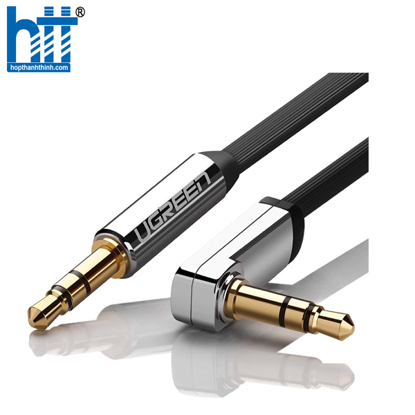 2. Cáp âm thanh 2 đầu 3,5mm có cấu tạo 2 đầu dẹt mạ vàng 24K giúp truyền dẫn tín hiệu tốt và chống han rỉ, đặc biệt đầu cáp âm thanh Ugreen được thiết kế bẻ góc 90 độ.