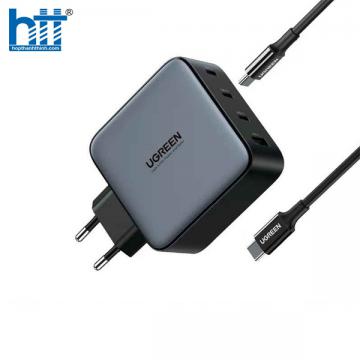 Ugreen 90575 100W Màu Đen Bộ sạc nhanh Nexode chip GaN gồm 3 cổng USB-C + USB-A kèm dây cáp USB-C dài 1.5M chuẩn cắm EU cd226 20090575