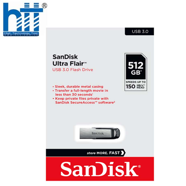 Với công nghệ tốc độ cao USB 3.0, SanDisk Ultra Flair USB 3.0 Flash Drive mang đến tốc độ lên đến 150MB/s, cho phép bạn chuyển một bộ phim độ dài đầy đủ chỉ ít hơn 30 giây. Di chuyển và sao lưu tất cả các tập tin bạn cần trên USB mà không cần lo lắng về việc đầy bộ nhớ với dung lượng 512GB.